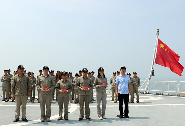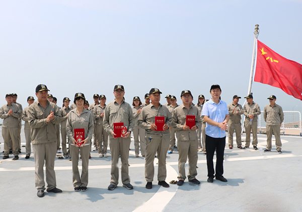 活動(dòng)中,大家一起參觀了軍艦,并在軍艦上舉行了2018年度優(yōu)秀共產(chǎn)黨員表彰和黨員示范崗授牌表彰儀式。隨后,公司全體黨員重溫入黨誓詞,站在甲板上,大家舉起右手、握緊拳頭莊嚴(yán)宣誓,感悟今日黨員之責(zé)任,更加堅(jiān)定黨員的理想信念。