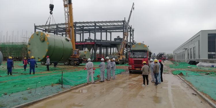5月8日,隨著一號庫4個調混罐的開始吊裝,董家口項目進入設備安裝階段。