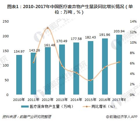 近年來,伴隨著醫(yī)學(xué)技術(shù)進步及人民生活水平、健康狀況的提高,臨床上大量使用一次性醫(yī)療衛(wèi)生用品,醫(yī)療廢棄物的產(chǎn)生量大幅提升。據(jù)前瞻產(chǎn)業(yè)研究院測算,2016年,我國醫(yī)療廢棄物產(chǎn)生量已達到191.96萬噸,同比增長5.22%。