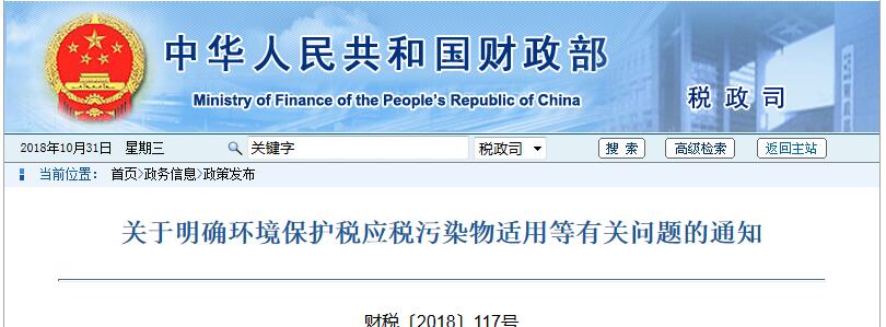 三部聯合發布:關于明確環境保護稅應稅污染物適用等有關問題的通知